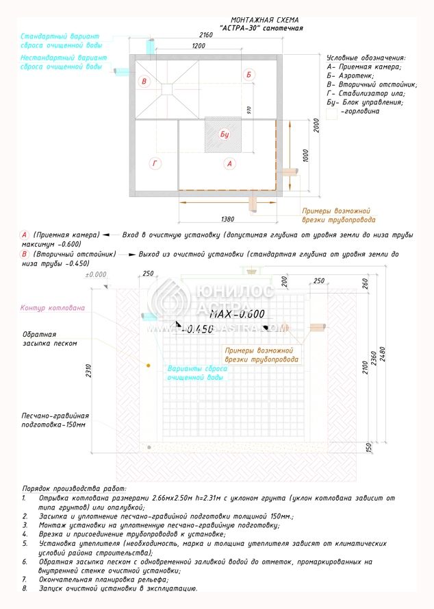 Профессиональный монтаж, выполненный нашими мастерами – это гарантия того, что септик Астра 30 будет работать долго и надежно. Обращайтесь, уважаемые господа!